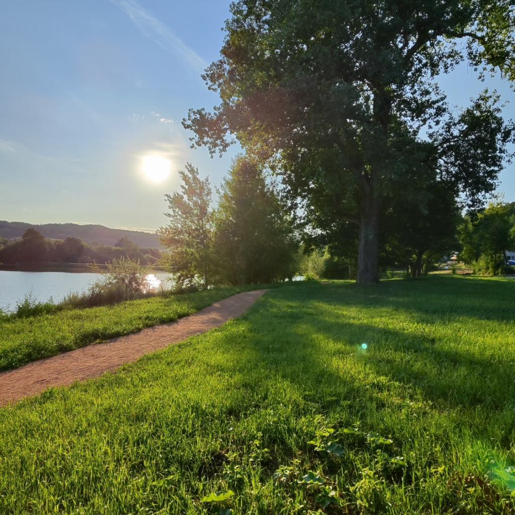 V relaxační zóně u Flusáru je nově umístěné molo, ze kterého můžete pozorovat třeba západ Slunce.