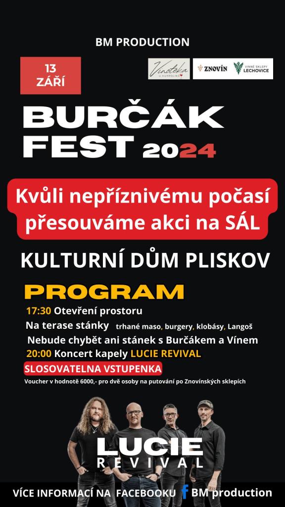 zveme všechny milovníky burčáku, vína a oblíbené kapely Lucie Revival na BURČÁKFEST!