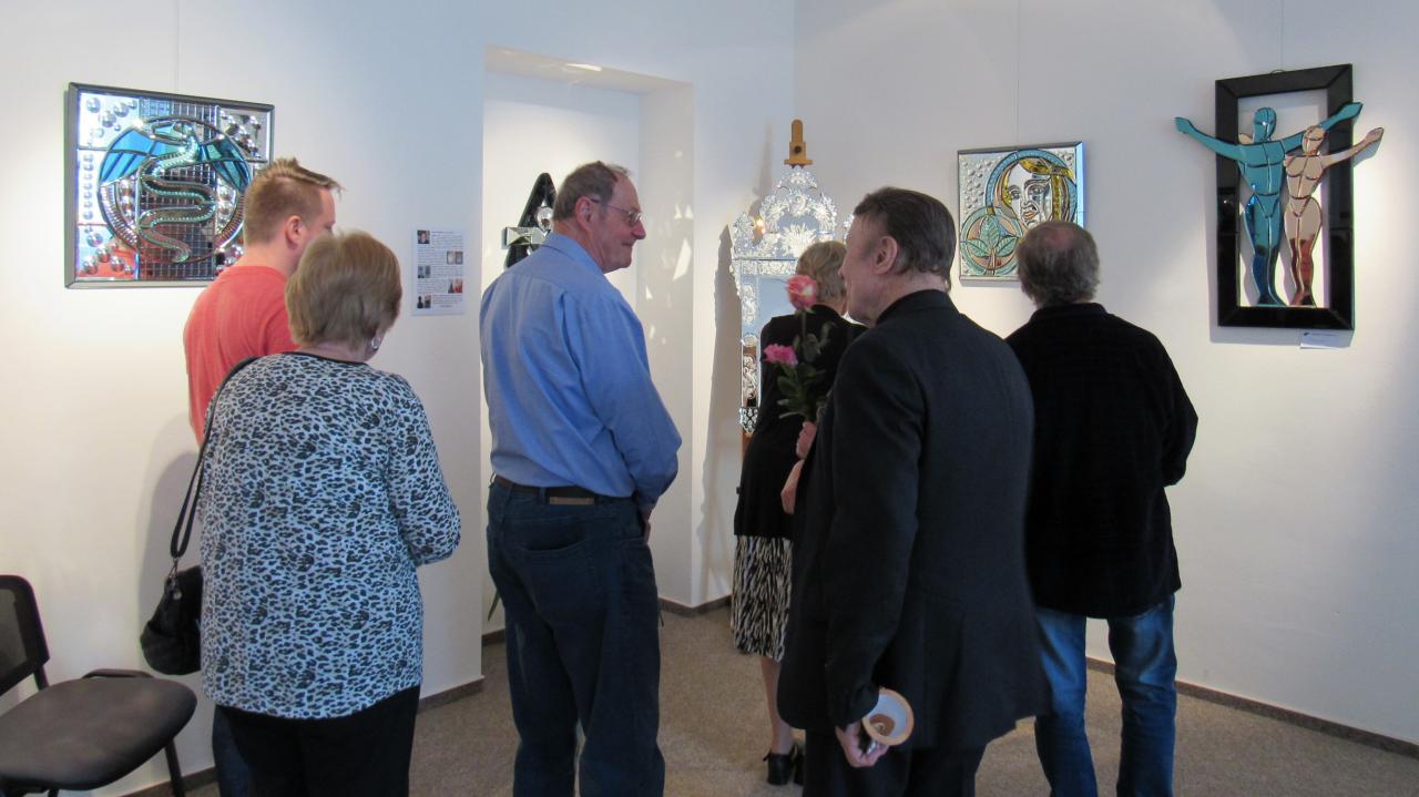 Vernisáž výstavy Marie Skolkové (obrazy ze skla) a Jany Vinterové (fotokoláže).