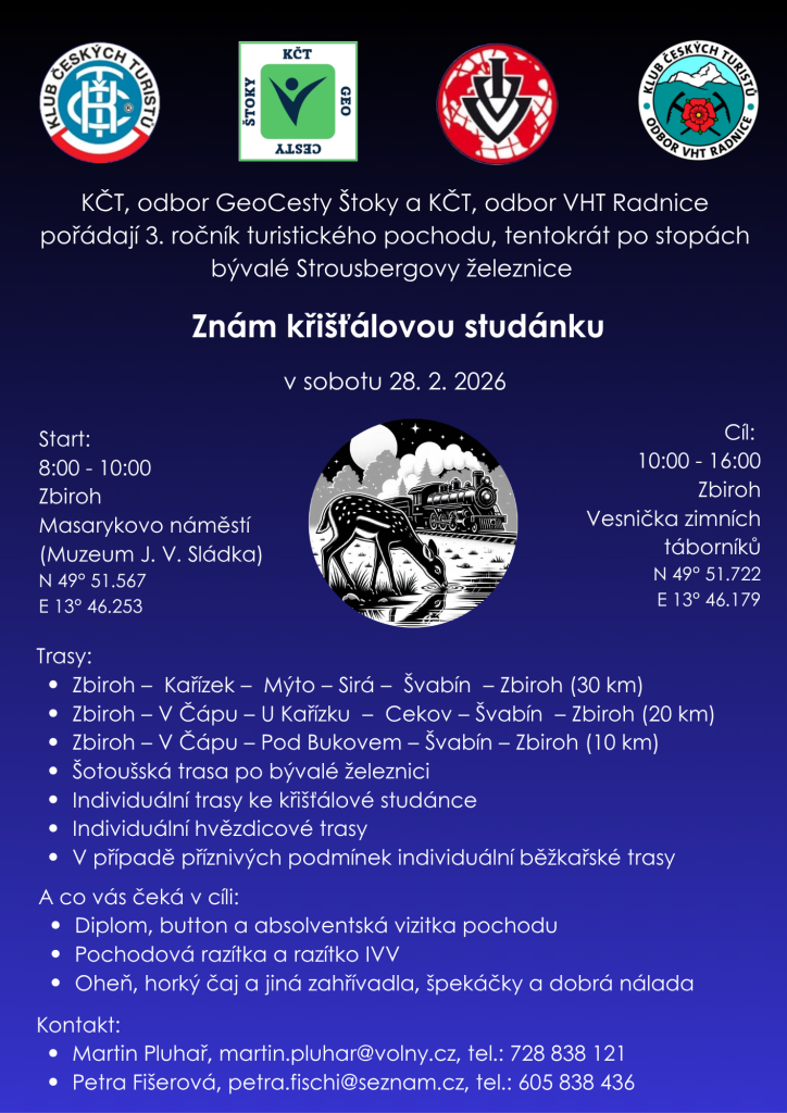 Všechny chodce, poutníky, turisty a snílky vítáme na startu v sobotu 28. února 2026 mezi 8.-10. hodinou.